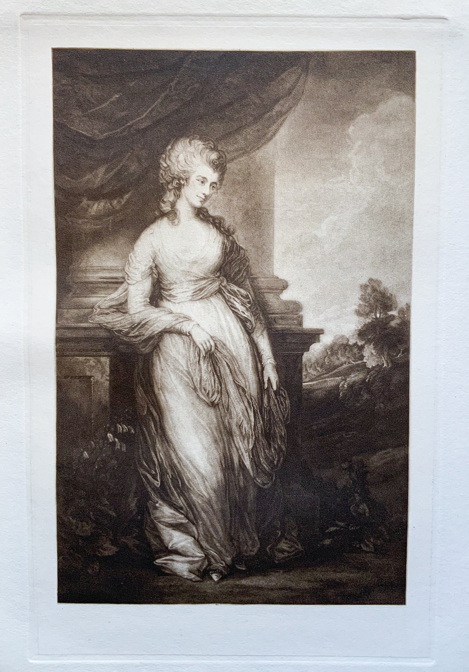 This is an original antique mezzotint from a book published in England in 1926.