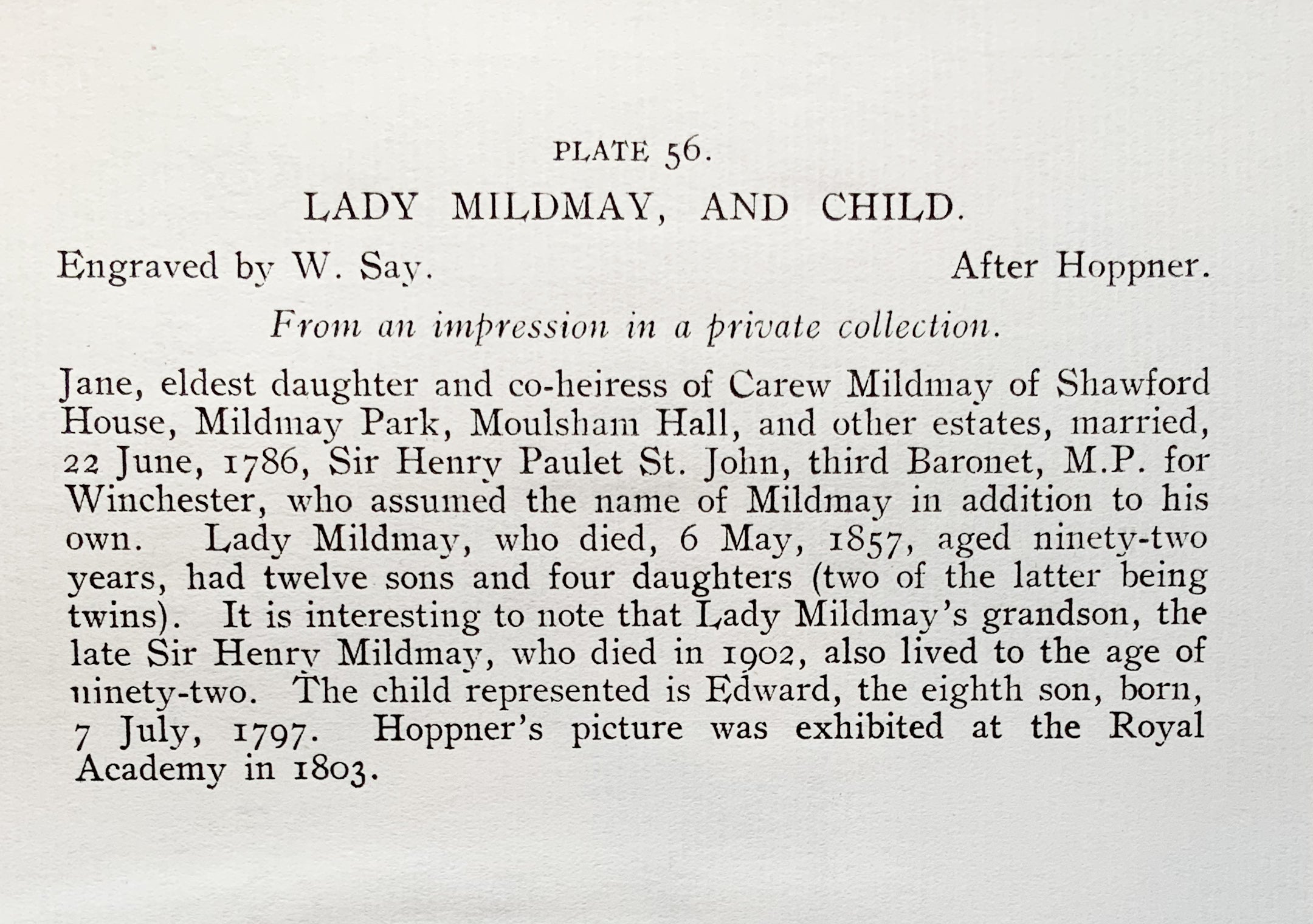 Antique Mezzotint “LADY MILDMAY, AND CHILD”